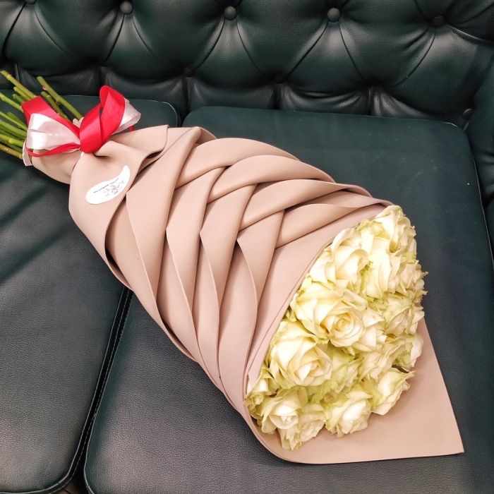 19 белых роз 70 см