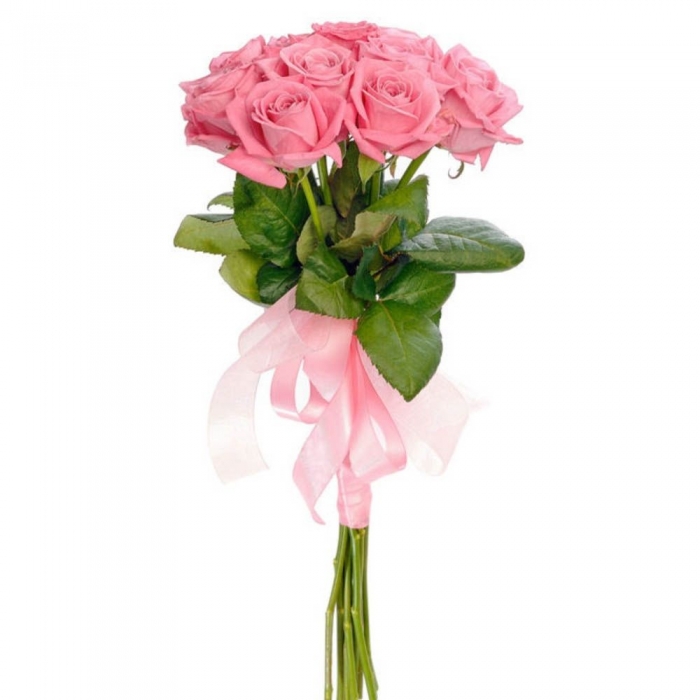 Букет из 9 розовых роз 50 см перевязанных бантиком — замечательный вариант бюджетного подарка для любого повода.