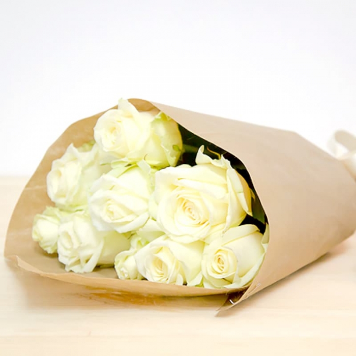 Отличный бюджетный букет из 9 роз 50 см сорта Аваланш и производства Эквадор в стильной крафтовой бумаге с нашим фирменным имбирным пряником в подарок!