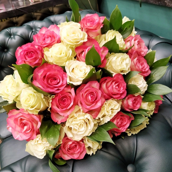Categories: Букеты, Букеты из белых роз, Букеты из Голландских роз, Букеты из роз, Букеты из розовых роз, Розы, Розы на 8 марта