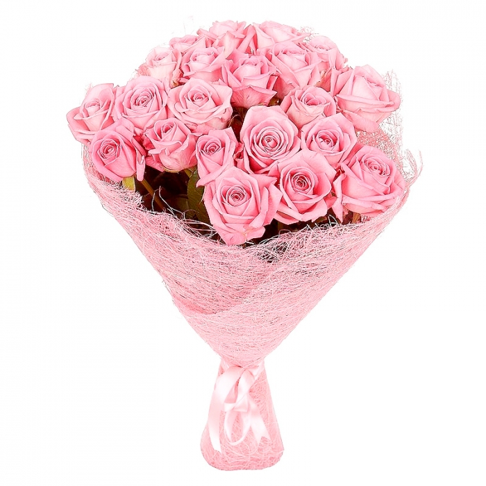 25 нежно-розовых голландских роз