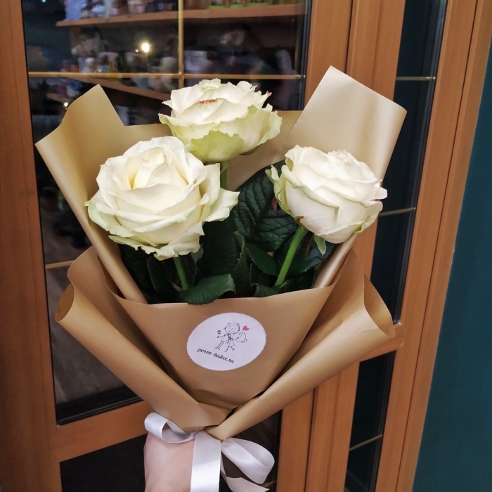 Букет из 3 белоснежных роз 50 см
