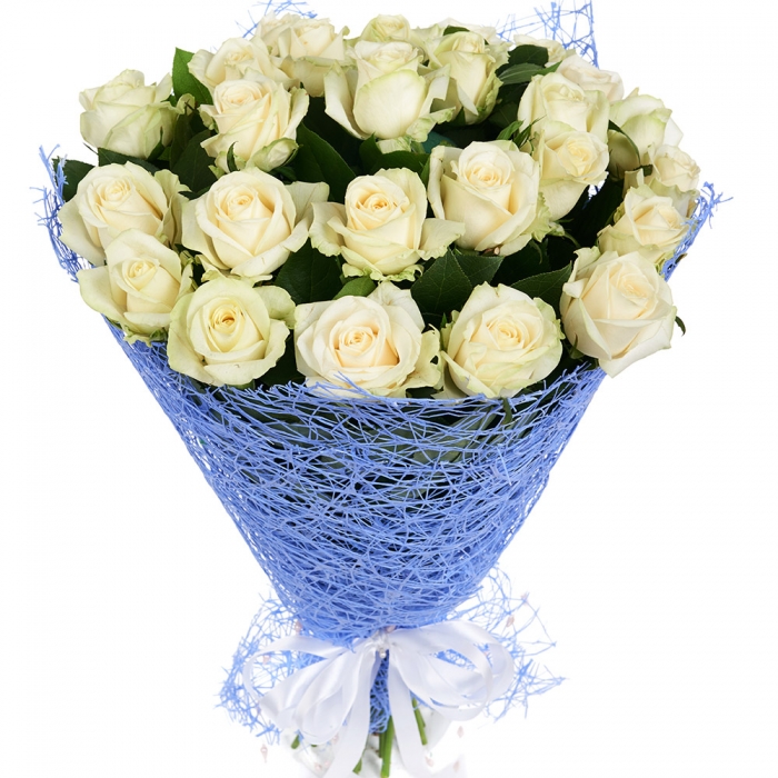 HomeКому даритьЖене Букет из белых роз «Чистая лазурь»