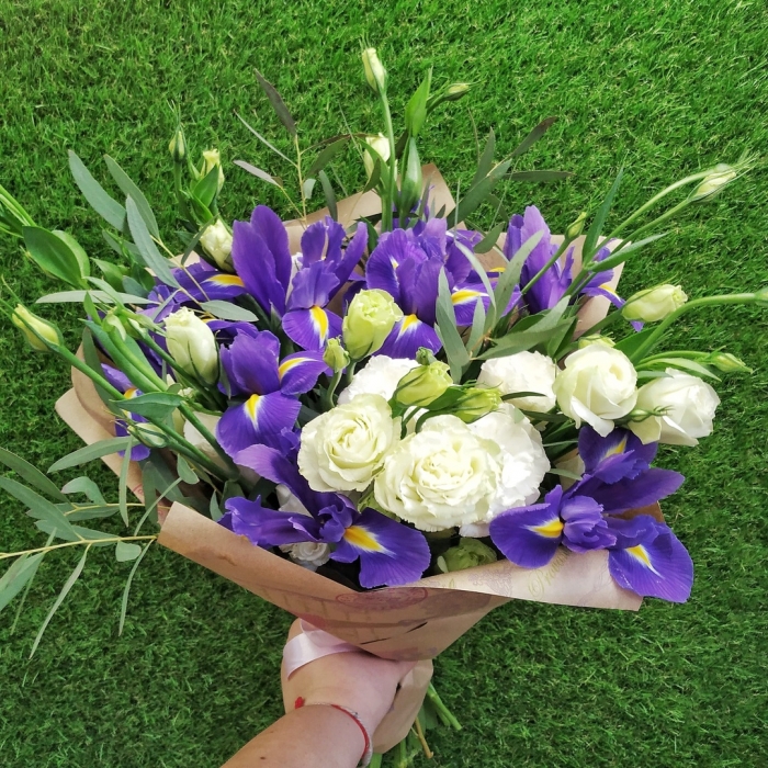 Categories: Букеты, Букеты из эустом, Ирисы, Эустомы
