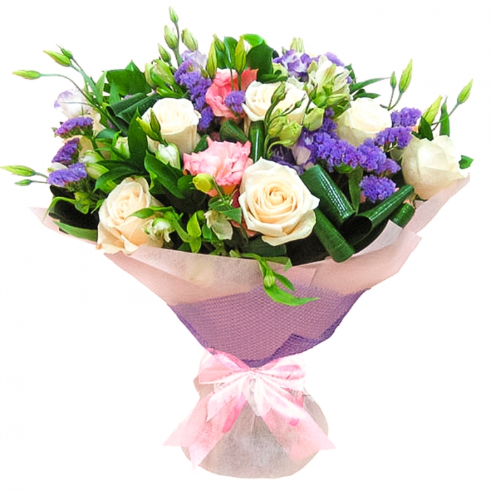 HomeЦветыЭустомы Букет из роз и эустомы «Прикосновение»