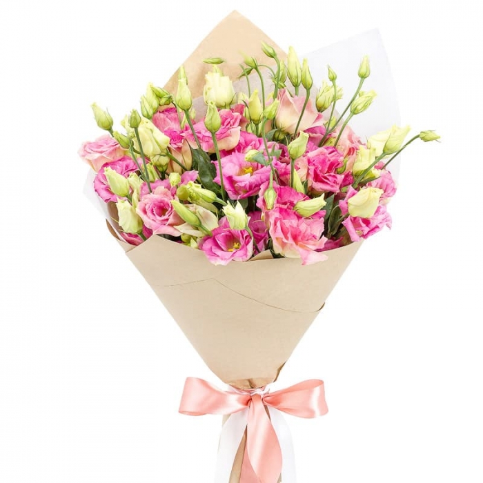 Нежный букет из 11 эустом, в оригинальной крафт-бумаге.