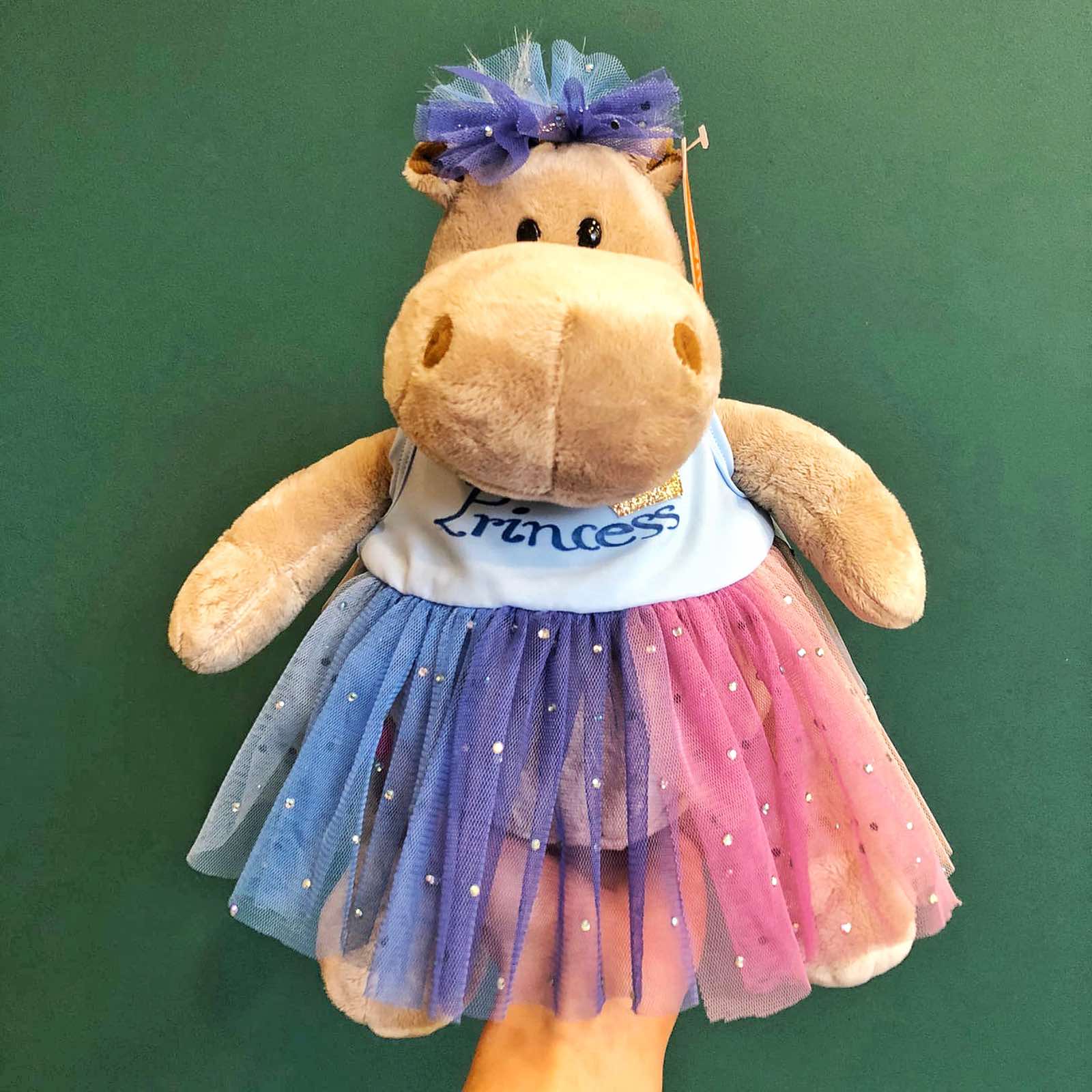 Голубое платьишко с воздушной пачкой в радужных оттенках, кокетливый розовый бантик на голове и вопиющее обаяние — эта милая принцесса сегодня особенно прелестна. И для этого, несомненно, есть повод: очаровательный бегемотик собирается на концерт своей любимой группы «Сахарные одуванчики». Талантливые музыканты обещали представить новый альбом, а в конце устроить караоке вместе со слушателями и угостить всех пышной сахарной ватой на палочке — негласным символом их музыкального коллектива. Должно быть очень весело! Составите бегемотику компанию?