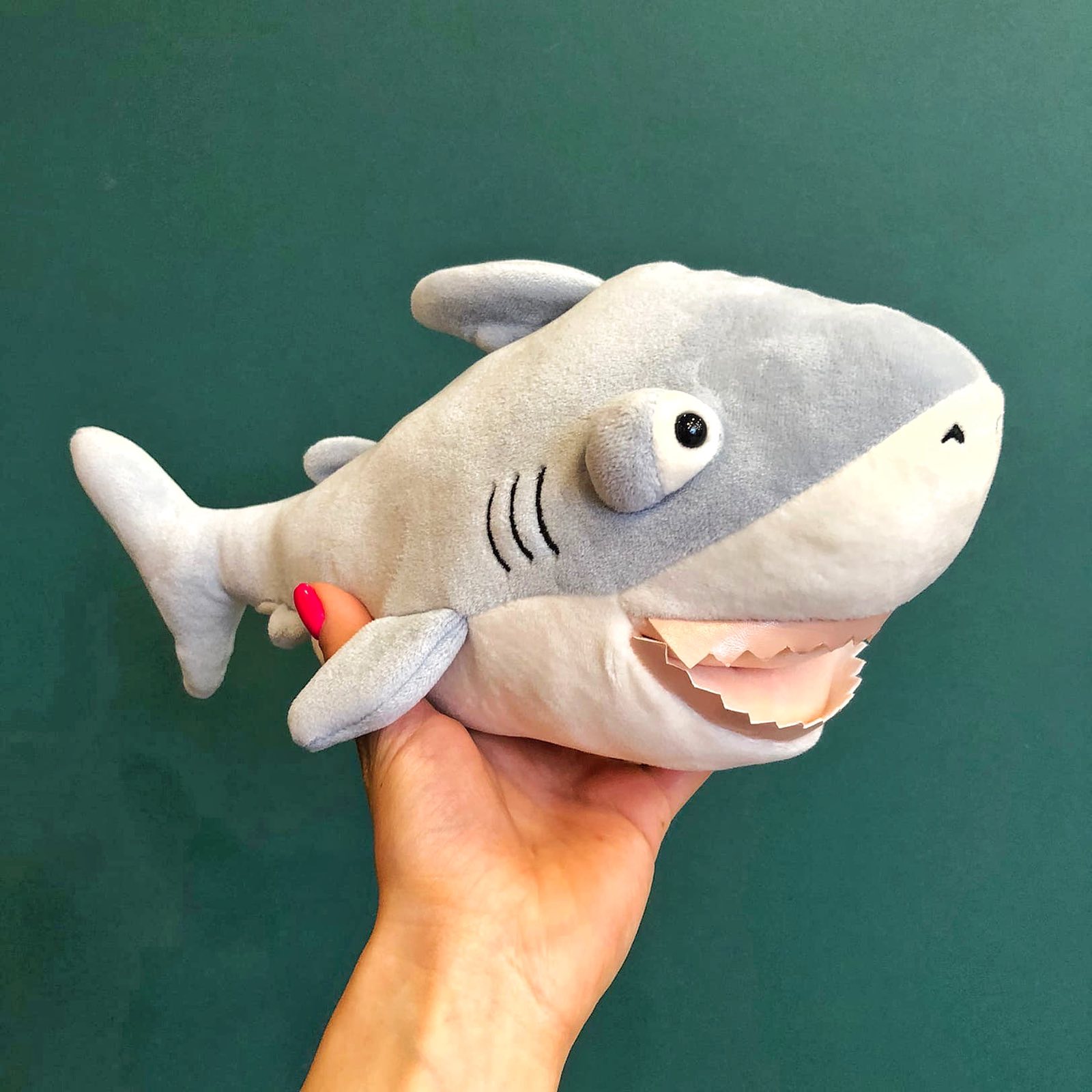 Мягкая игрушка-подушка Акула Эдвин 35 см с кармашком для рук