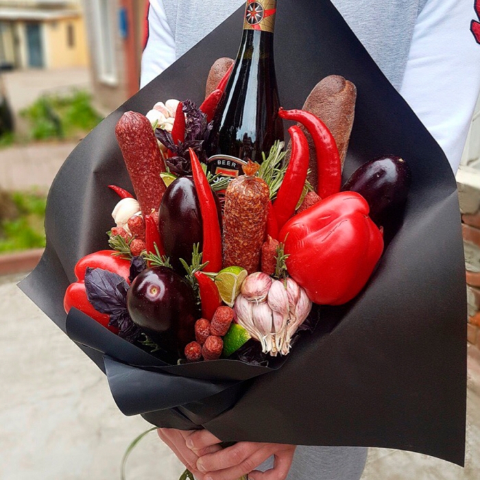 | Состав съедобных букетов | Мясной, Овощной |