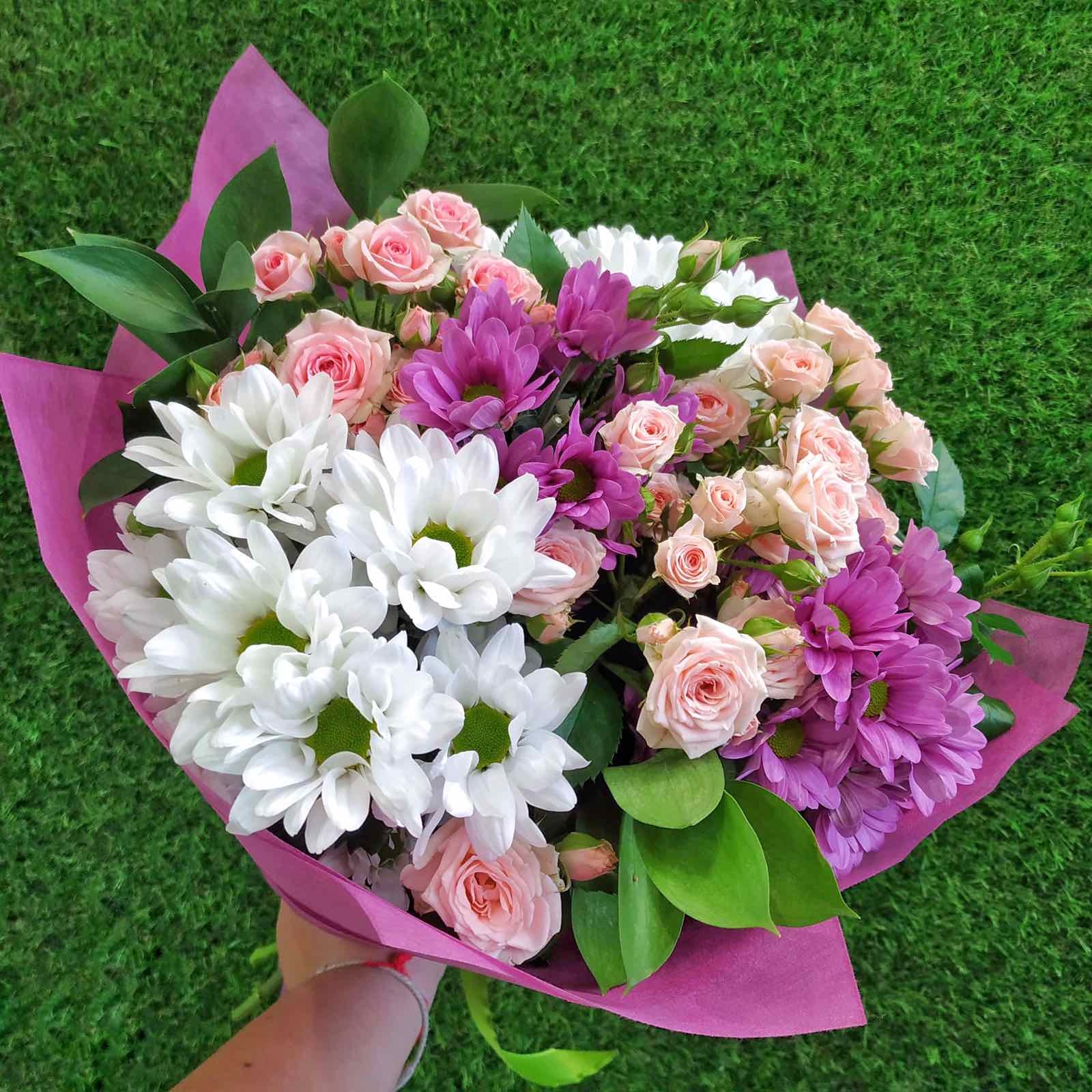 Categories: 8 марта, Букеты, Букеты из кустовых роз, Букеты из роз, День матери, День рождения, День святого Валентина, День учителя, Жене, Маме, Оригинальные букеты, Розы, Розы на 8 марта, Татьянин День, Хризантемы Tag: готово